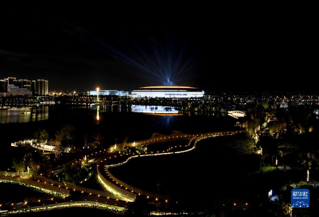 这是7月28日拍摄的开幕式后的东安湖体育公园夜景。