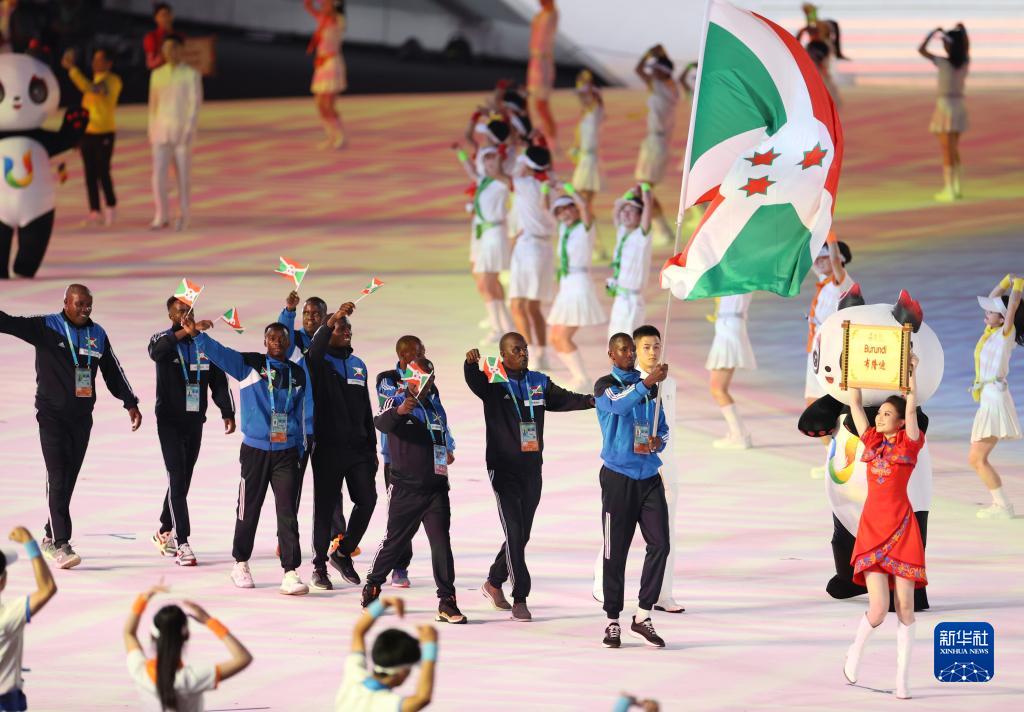 7月28日,布隆迪大学生体育代表团在开幕式上入场。