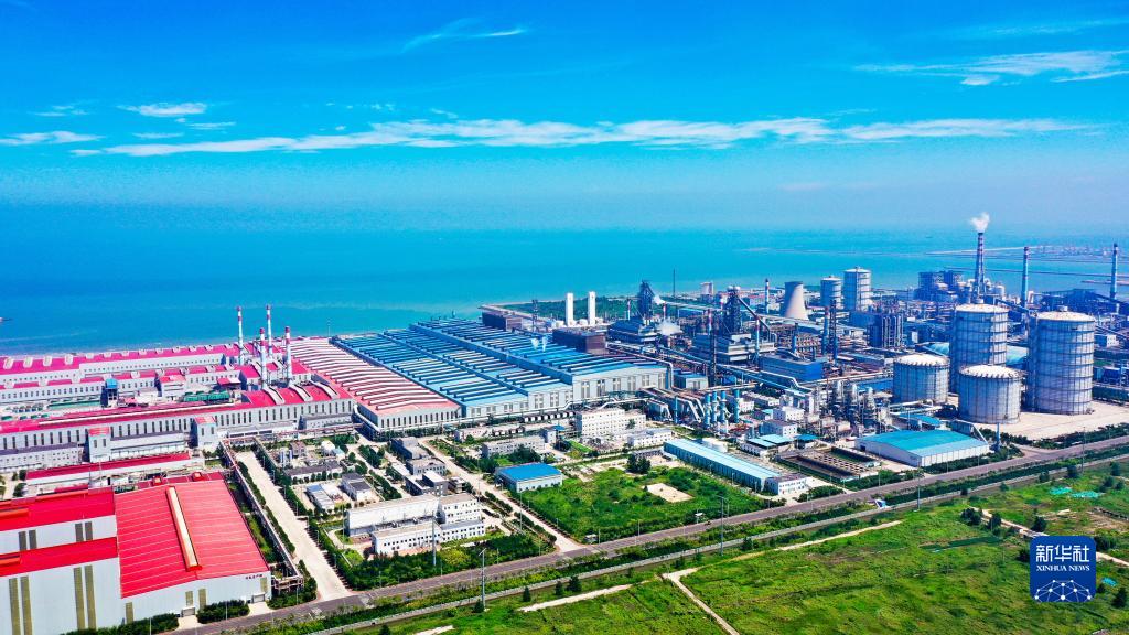 这是8月4日无人机航拍的山东钢铁集团日照钢铁精品基地。