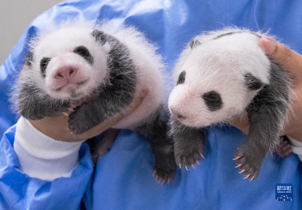 旅韩大熊猫“爱宝(华妮)”于7月7日产下的雌性双胞胎幼崽已经满月。据介绍,大熊猫双胞胎幼崽的体重分别从180克和140克增至1.1公斤和1.2公斤。