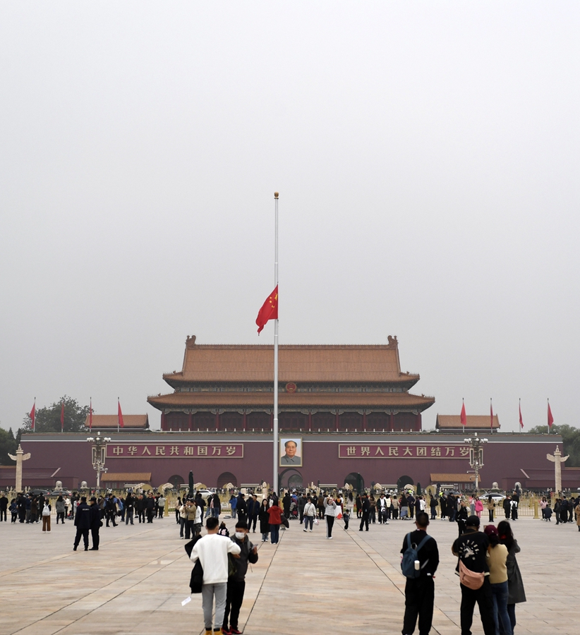 11月2日,为悼念李克强同志,首都天安门下半旗志哀。