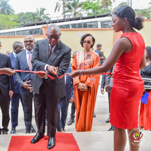 11月2日,刚果(金)总理卢孔德(前中)在首都金沙萨举行的落成仪式上剪彩。
