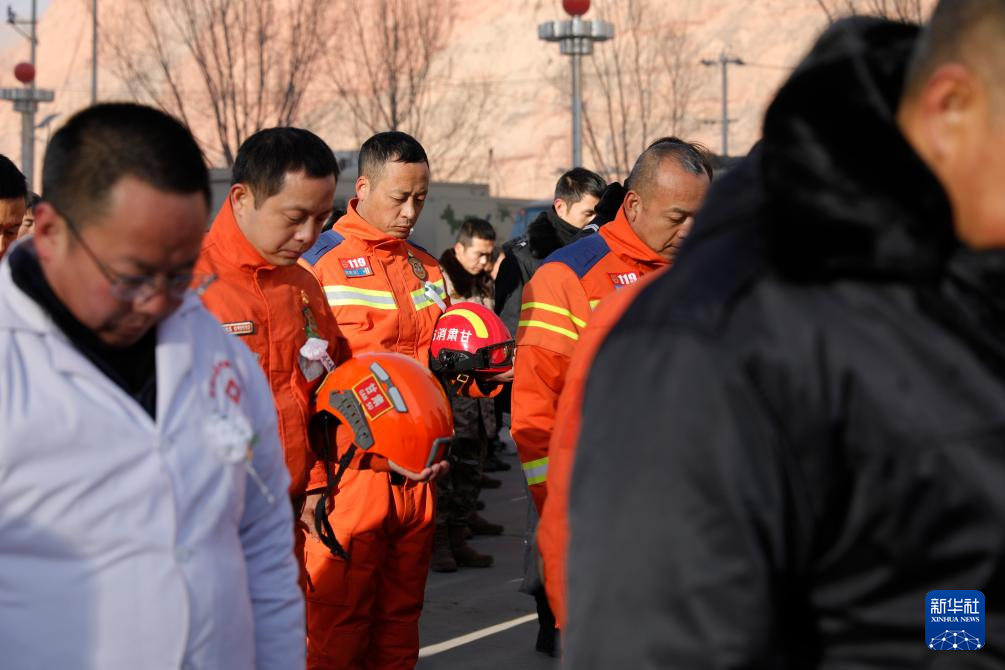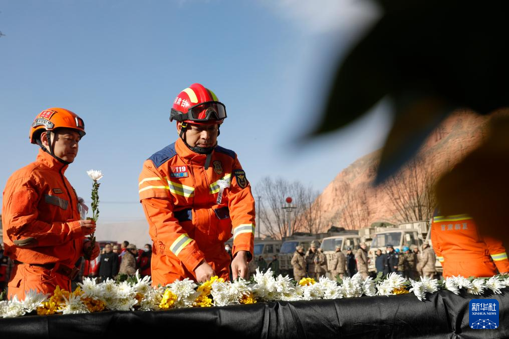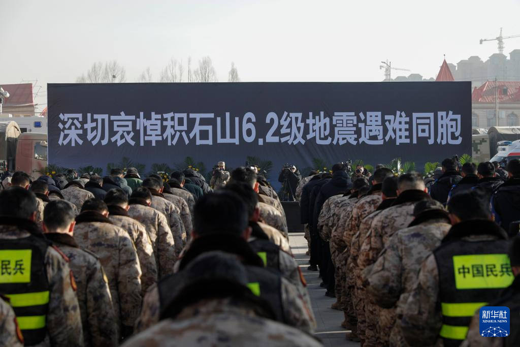 当日,深切哀悼积石山6.2级地震遇难同胞默哀仪式在甘肃省临夏州积石山县大河家镇大河文化广场举行。