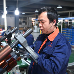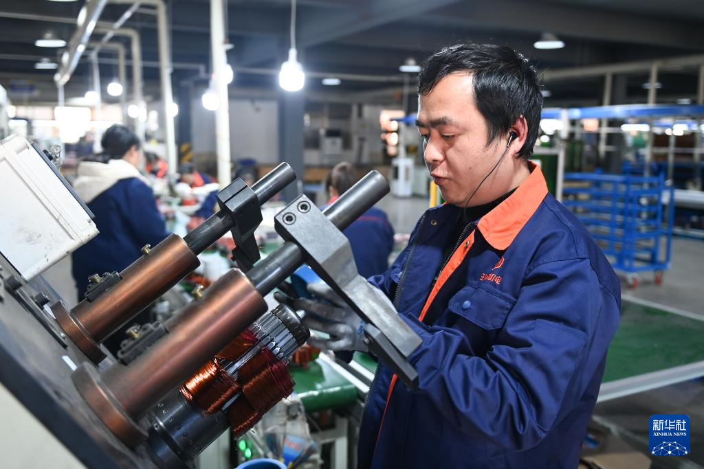 12月27日,工人在嵊州市玖和机电有限公司的绕线车间作业。