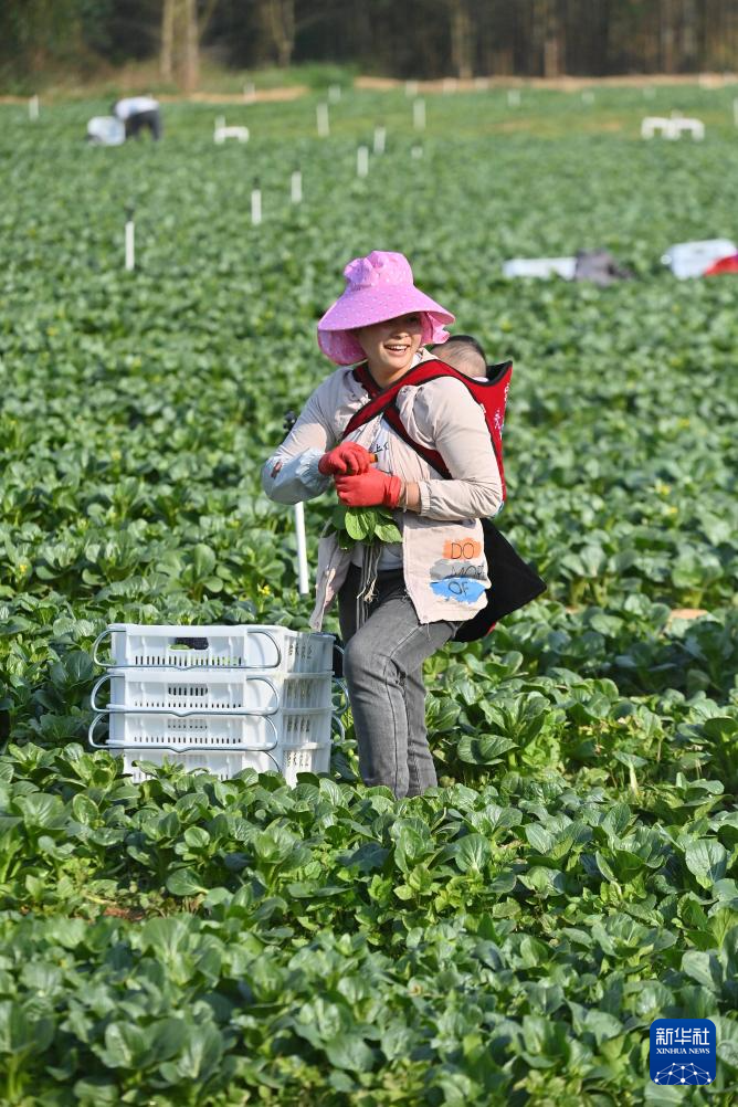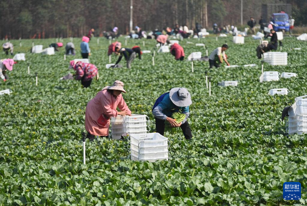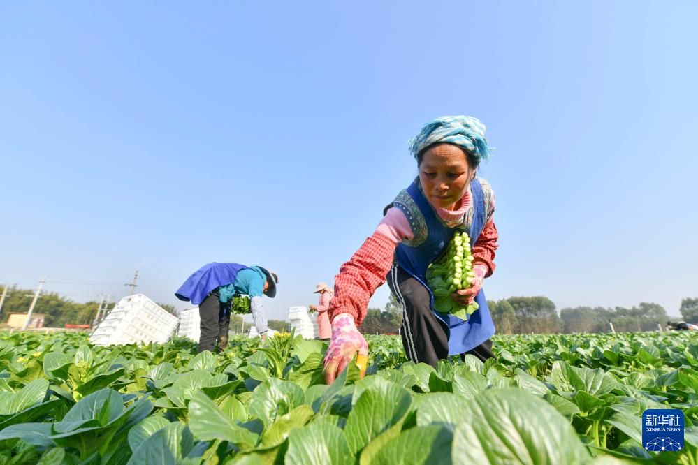 12月27日,工人在鹿寨县江口乡丹竹村蔬菜种植示范基地采收蔬菜。