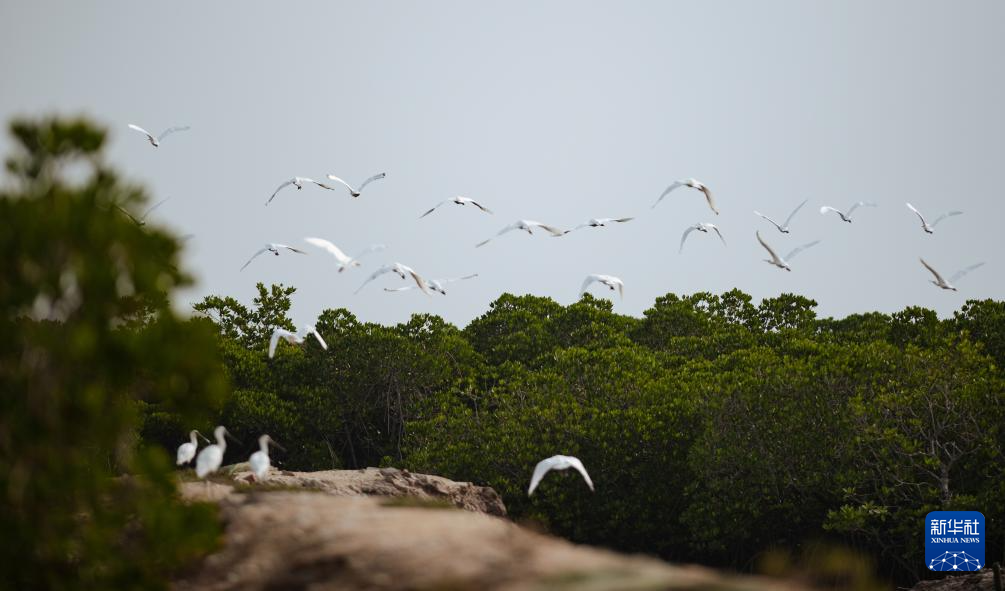 近日,被誉为“鸟中大熊猫”的国家一级重点保护野生动物黑脸琵鹭飞抵位于海南省儋州市的海南新盈红树林国家湿地公园越冬。近年来,海南不断加强对湿地和鸟类的保护,湿地生物多样性日益丰富,生态环境持续改善,来此越冬的黑脸琵鹭数量稳步增加,连续两年在海南越冬水鸟调查暨全国黑脸琵鹭同步调查中创下新纪录。