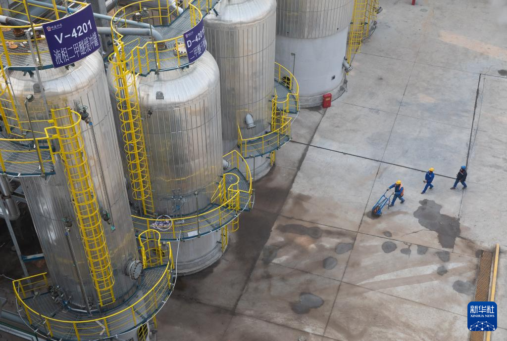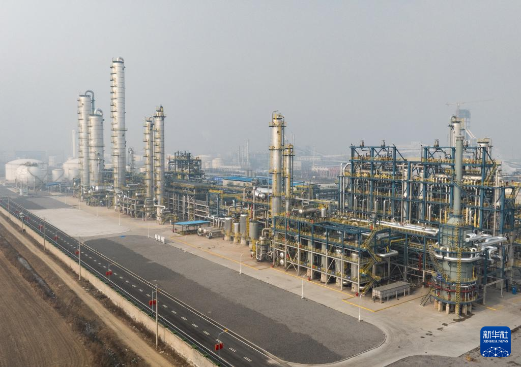 12月28日在淮北矿业集团碳鑫科技有限公司拍摄的60万吨/年乙醇生产装置(无人机照片)。