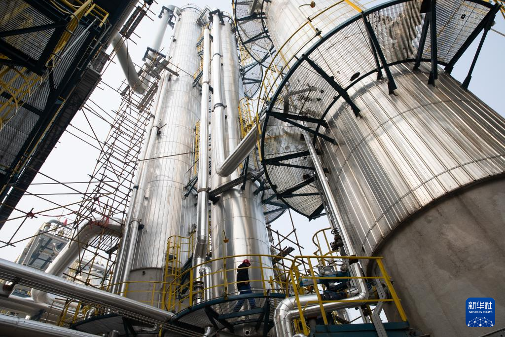 12月28日,在淮北矿业集团碳鑫科技有限公司,工作人员在观察60万吨/年乙醇生产装置运行情况。