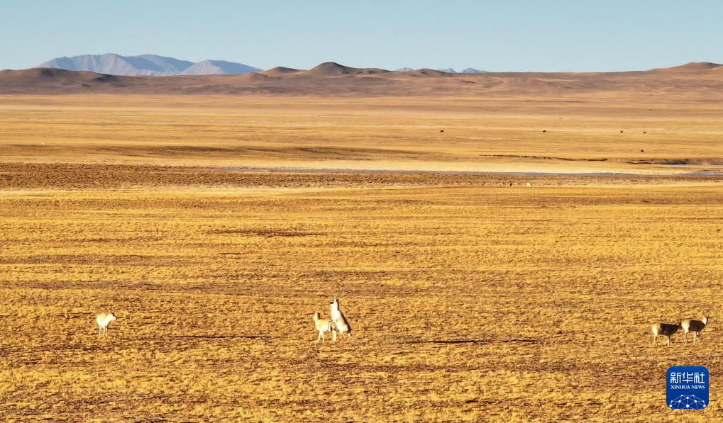 阿尔金山国家级自然保护区,几只公藏羚在追逐、打斗(无人机照片,12月18日摄)。