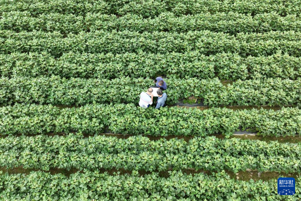 12月29日,石家庄农科院的科研人员在海南三亚国家南繁科研育种基地给棉花做杂交实验(无人机照片)。