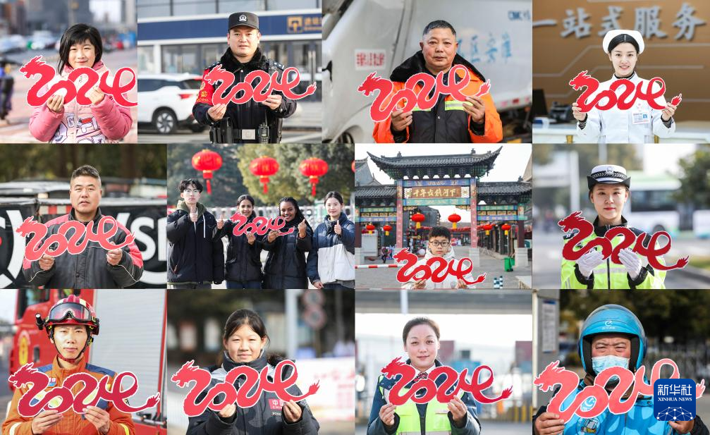 1月1日,江苏省淮安市不同行业的人们展示“2024”字样(拼版照片)。