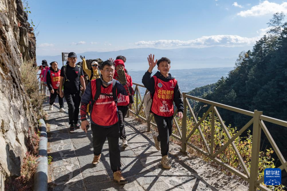 1月1日,人们在云南大理参加新年登高健身活动。