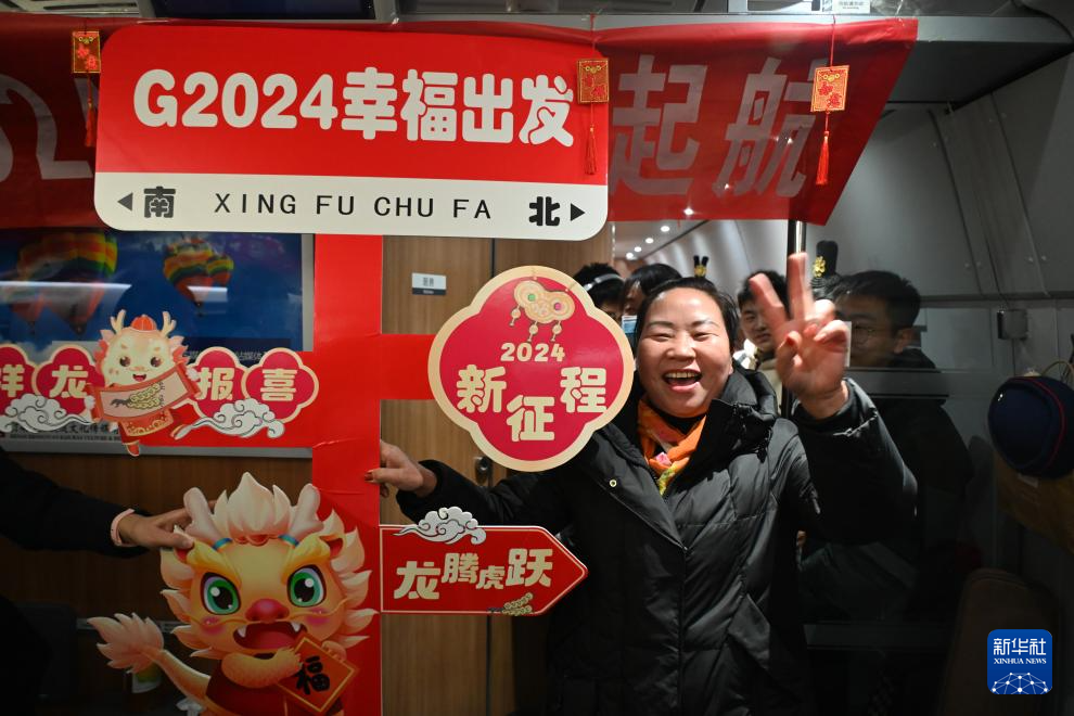 1月1日,在从兰州开往郑州的G2024次列车上,乘客在庆祝新年。