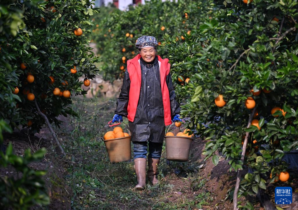 1月3日,古蔺县马蹄甜橙专业合作社的果农在收获甜橙。
