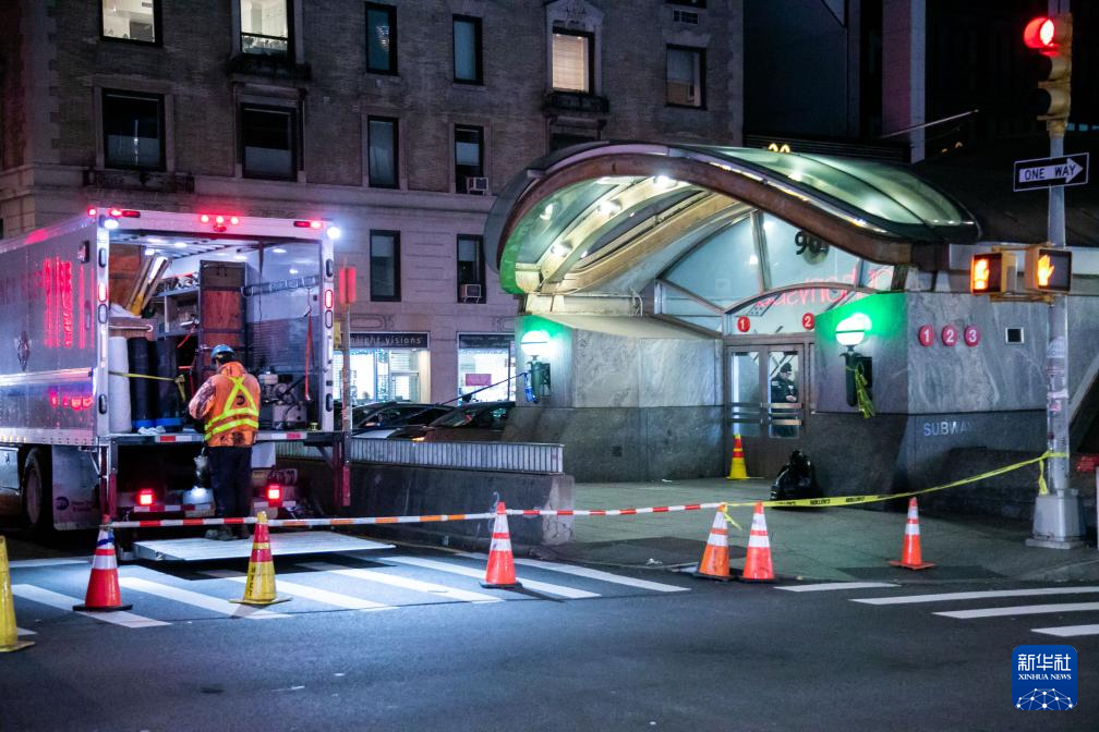 2024年1月4日,在美国纽约,工作人员在列车脱轨事故现场外工作。