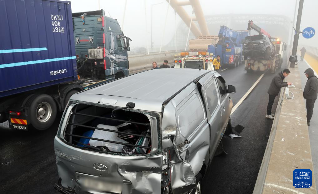 这是2024年1月4日在韩国世宗市拍摄的汽车连环相撞事故现场。