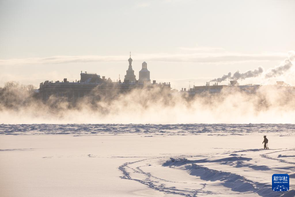 2024年1月4日,在俄罗斯第二大城市圣彼得堡,结冰的涅瓦河上冰雾弥漫。