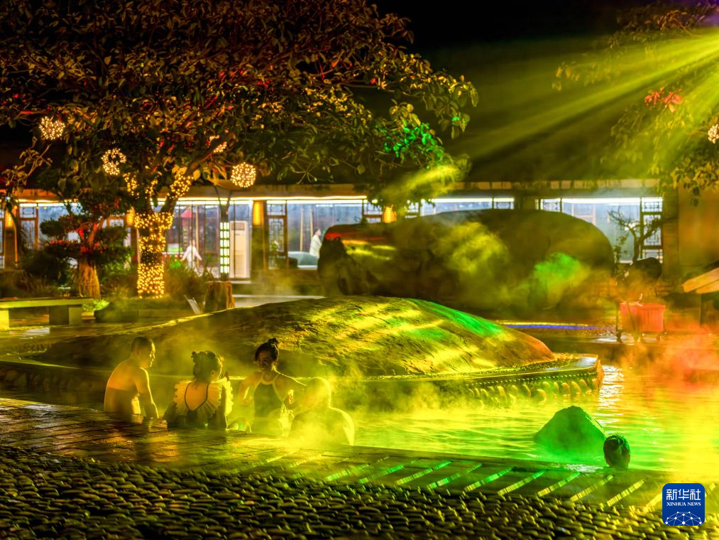 1月7日,游客在云南省水富市西部大峡谷泡温泉。