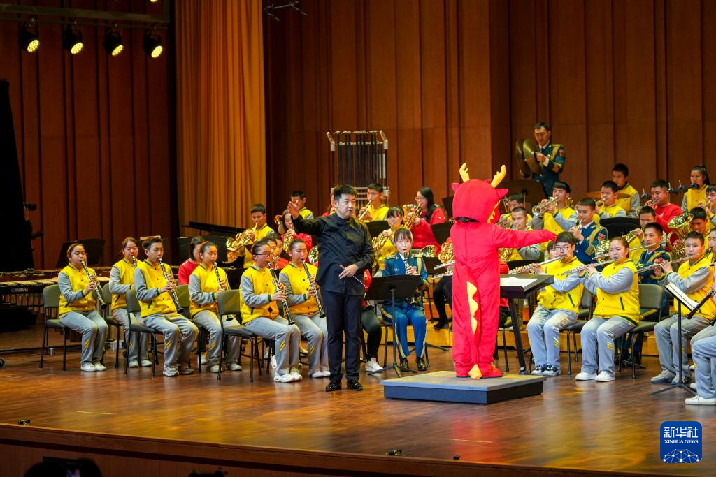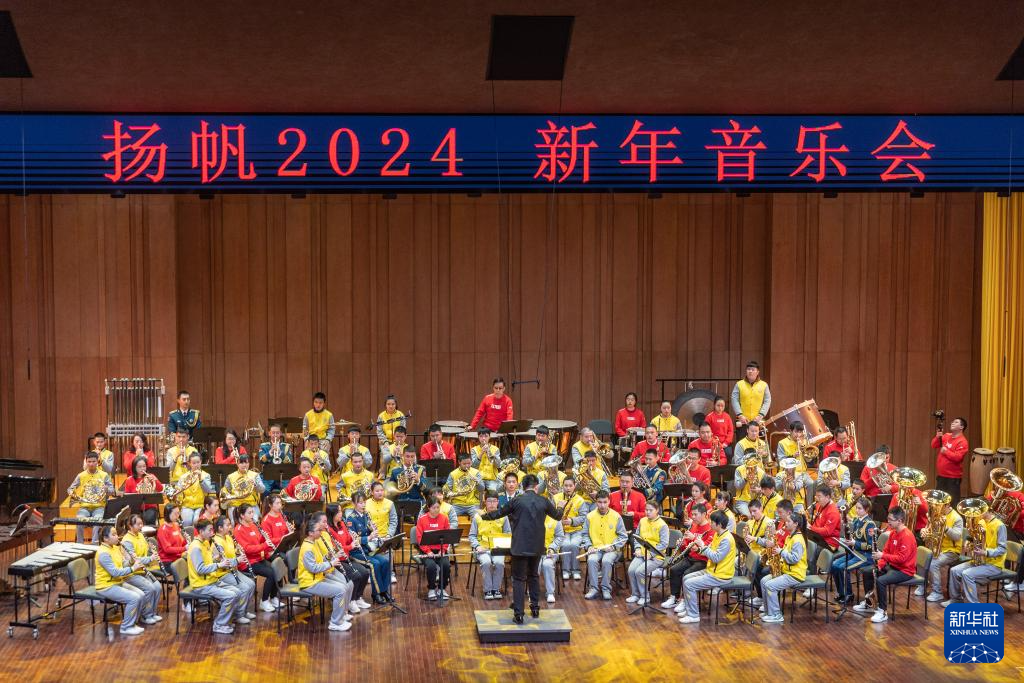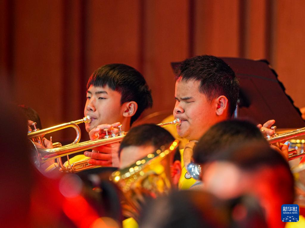 2024年1月6日,在重庆市特殊教育中心的扬帆音乐厅,扬帆管乐团成员和校外常任音乐老师在新年音乐会上演出。