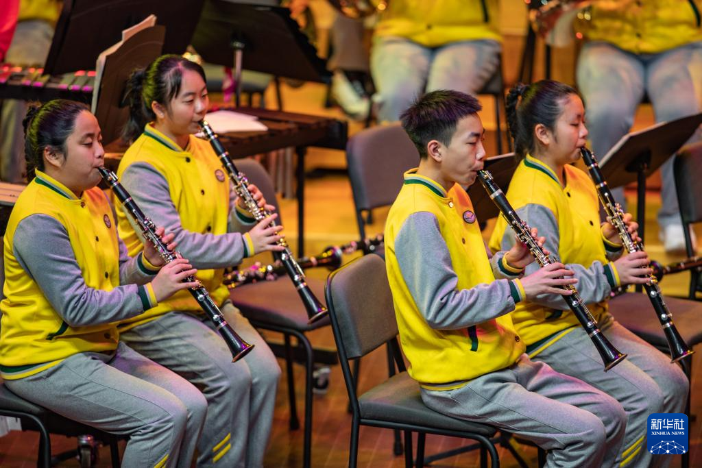 2023年12月28日,在重庆市特殊教育中心的扬帆音乐厅,扬帆管乐团成员在排练新年音乐会节目。