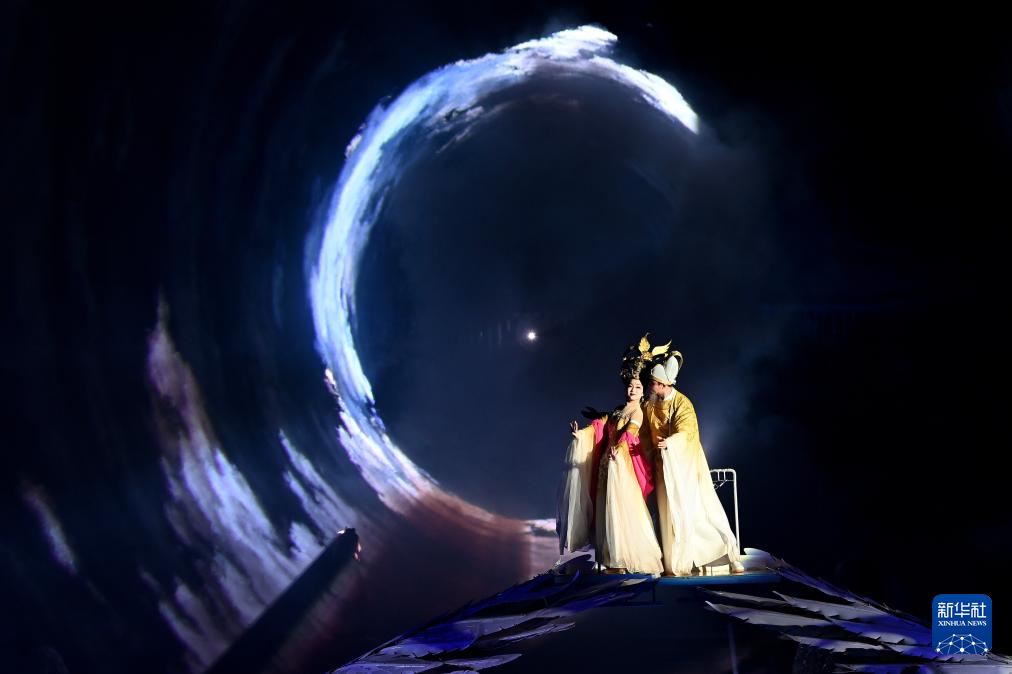 冬日寒夜,骊山脚下灯火璀璨,位于西安市临潼区的华清宫九龙湖上,根据白居易长篇叙事诗《长恨歌》创作的同名大型实景历史舞剧每晚在此上演。以山为大幕,水为舞台,70分钟的舞剧将历史故事、舞台演艺和声光电巧妙融合,艺术再现了1300多年前华清宫里唐玄宗与杨玉环的爱情故事,展示了大唐盛世的恢弘气象。
