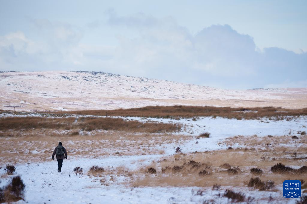 1月19日,一名男子在英国英格兰北部荒原的雪地上行走。