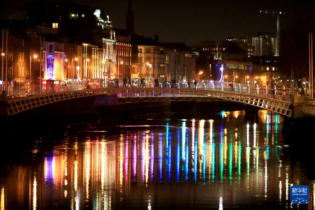 这是1月15日拍摄的爱尔兰首都都柏林夜景。