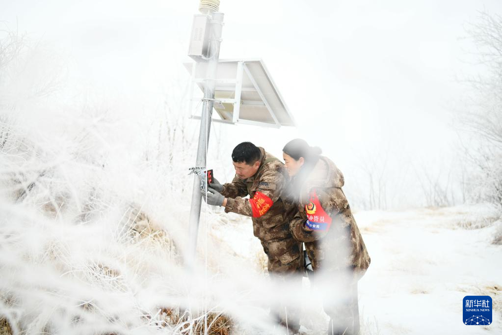 1月18日,在山东省潍坊市临朐县国有沂山林场,护林员蔡长春和妻子张庆丽一起外出巡视。