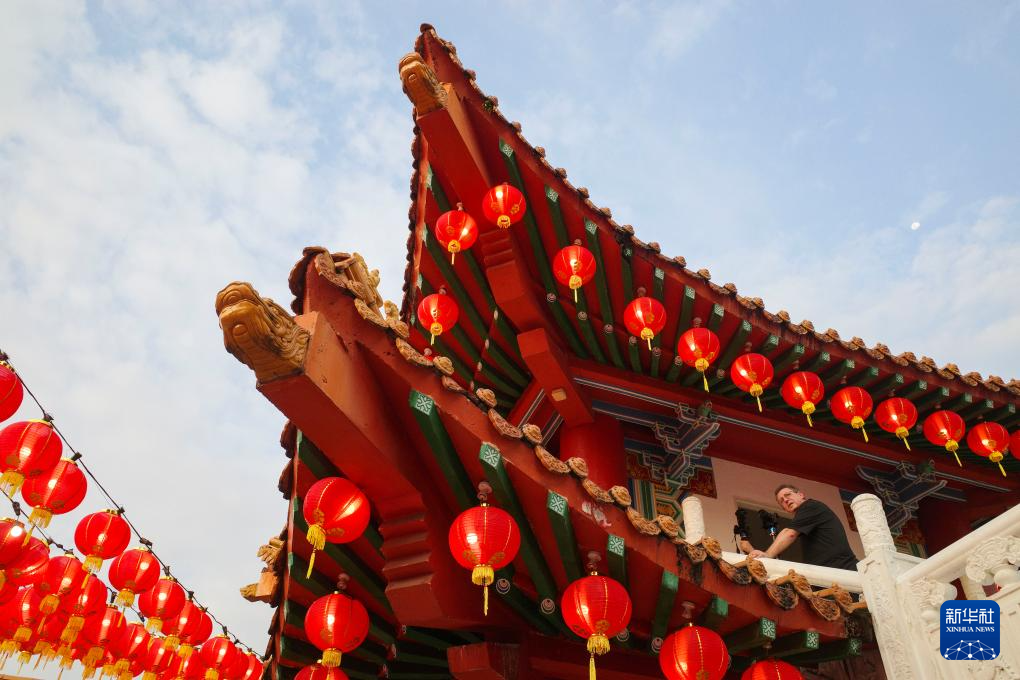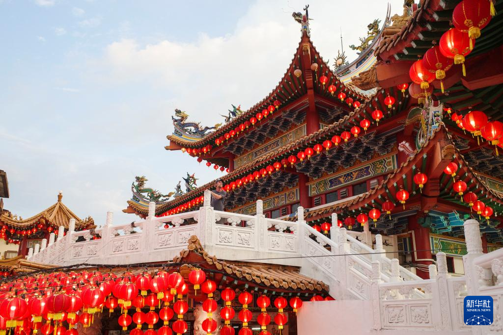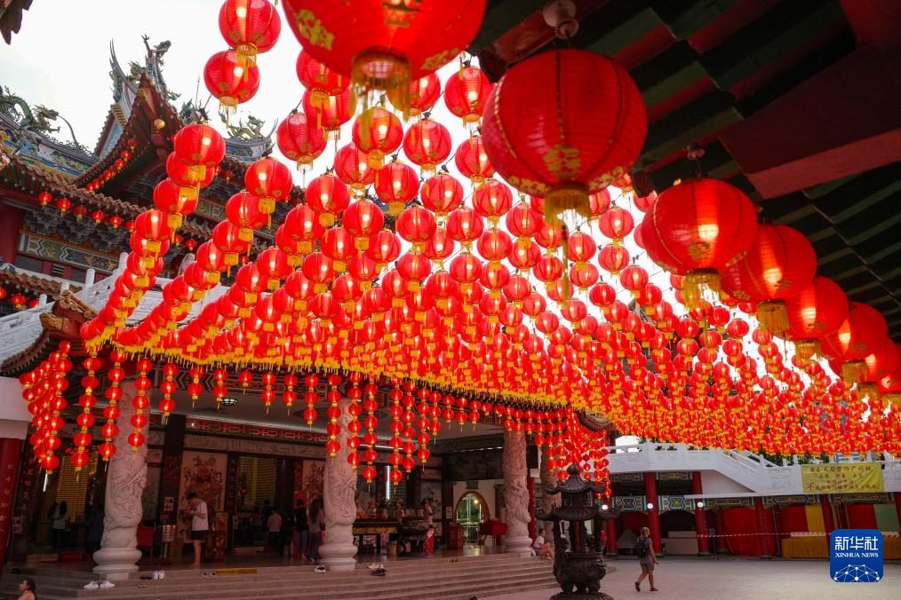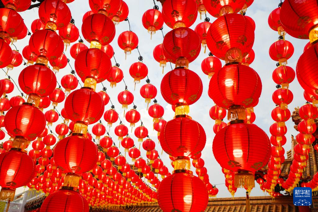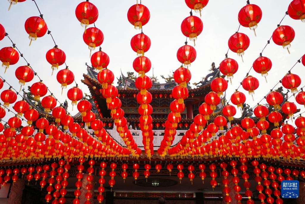 近日,马来西亚吉隆坡天后宫每晚点亮几千只红灯笼,迎接农历甲辰龙年的到来。