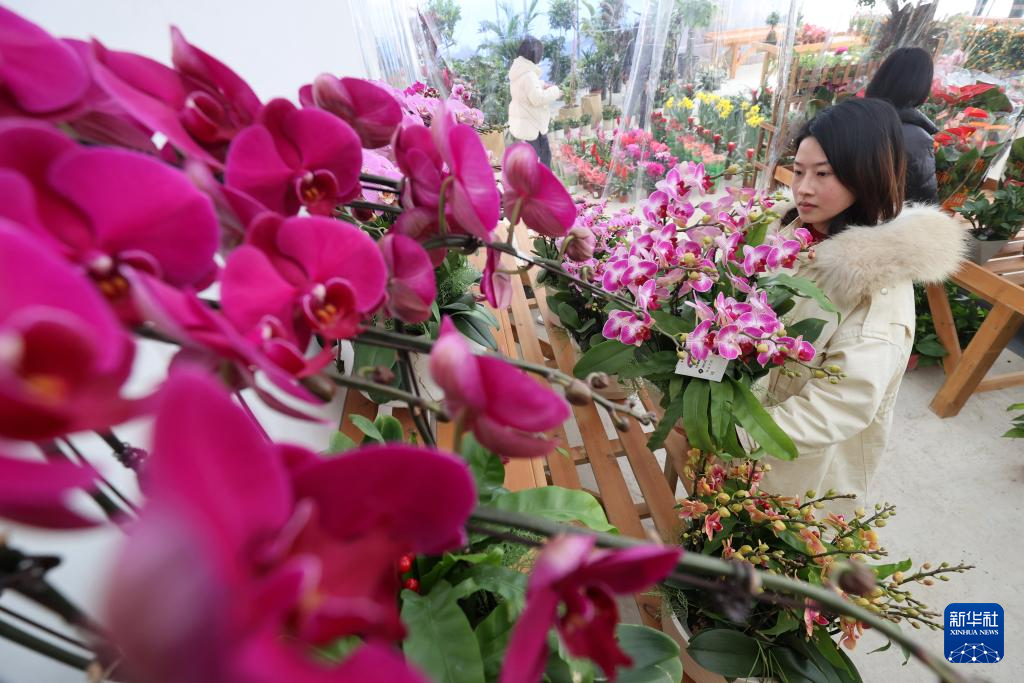 1月22日,市民在浙江省湖州市德清县一处花卉市场选购花卉。