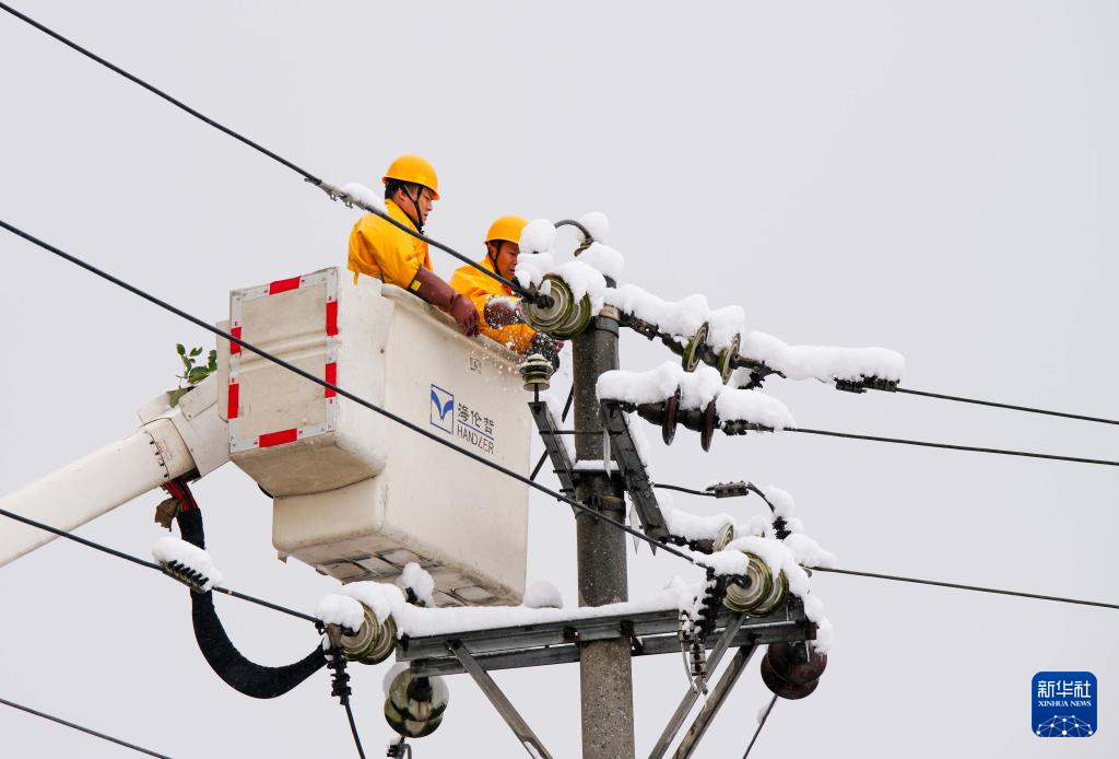 1月22日,在贵州省铜仁市玉屏侗族自治县,工作人员在检修供电线路。