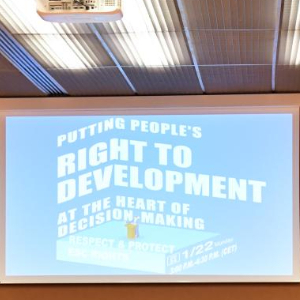 这是1月22日在瑞士日内瓦拍摄的联合国人权理事会第四轮国别人权审议工作组会议主题边会“将发展置于议程中心:经社文权利的保障”会议现场。