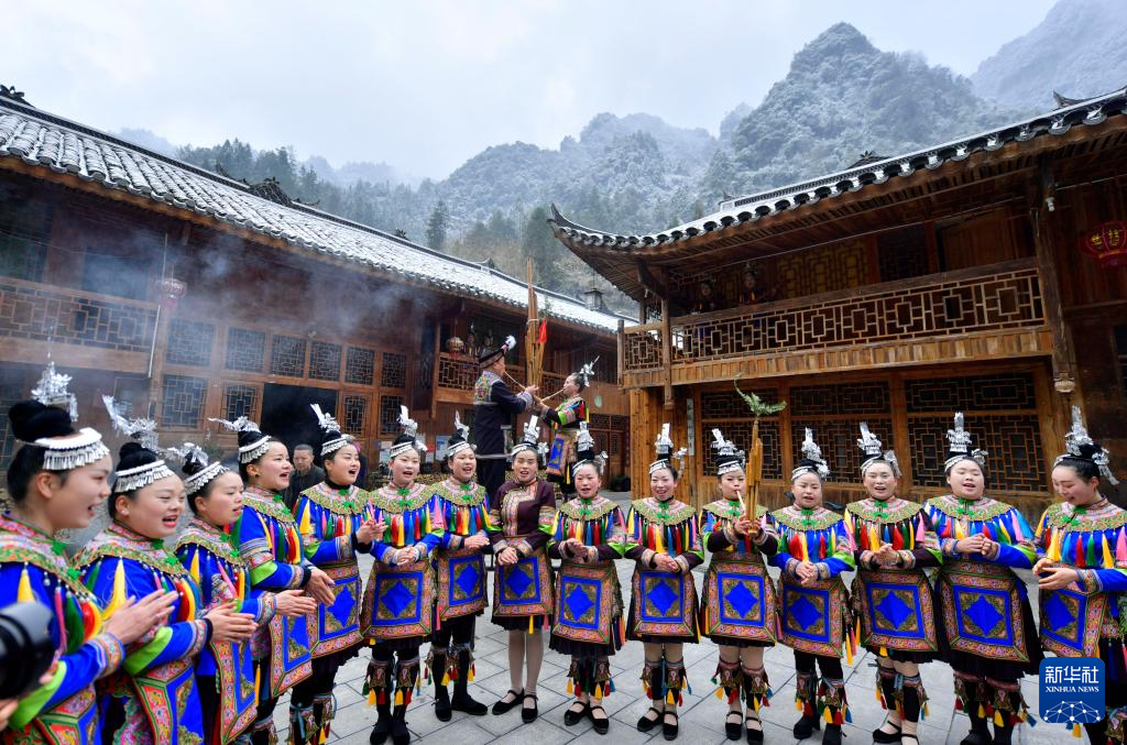 1月24日,在宣恩县长潭河侗族乡两溪河村,村民在表演侗族大歌。