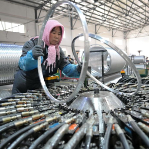 1月24日,工人在河北省唐山市芦台经济开发区一自行车配件企业的生产车间工作。
