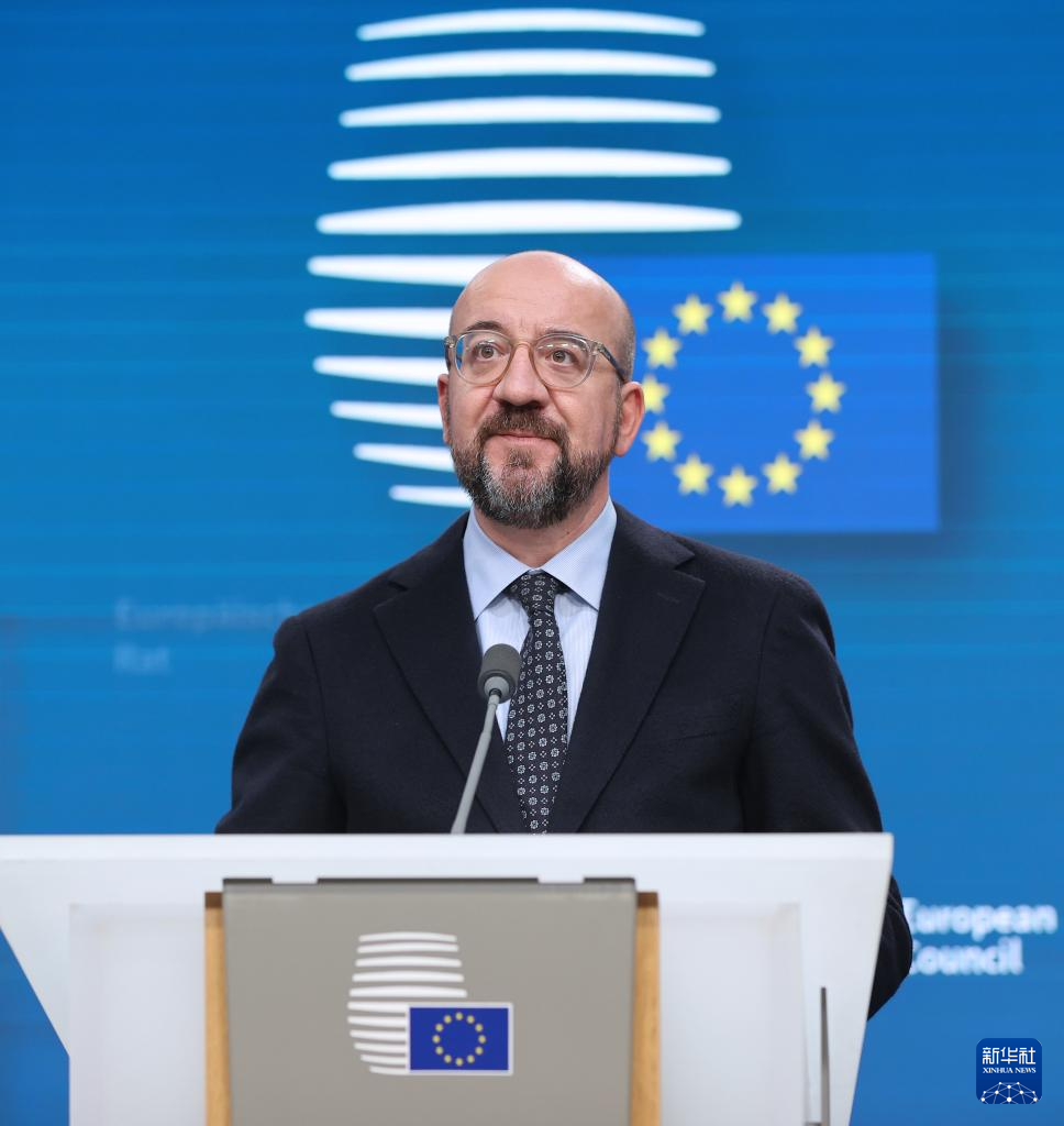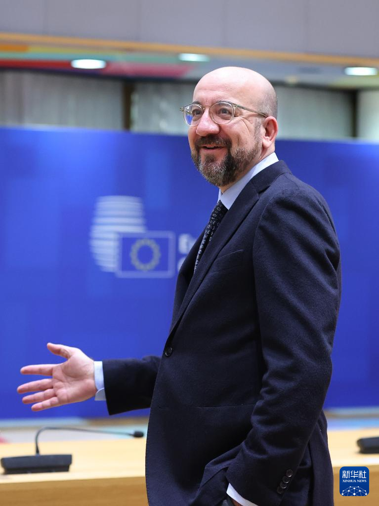 这是2023年12月15日,欧洲理事会主席米歇尔在比利时布鲁塞尔出席欧盟峰会。