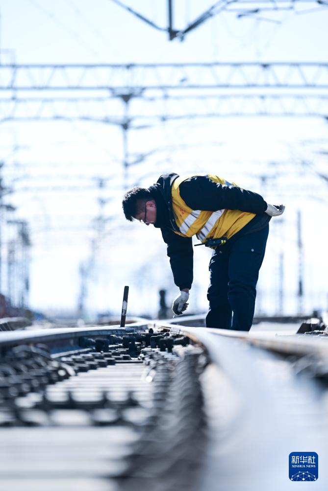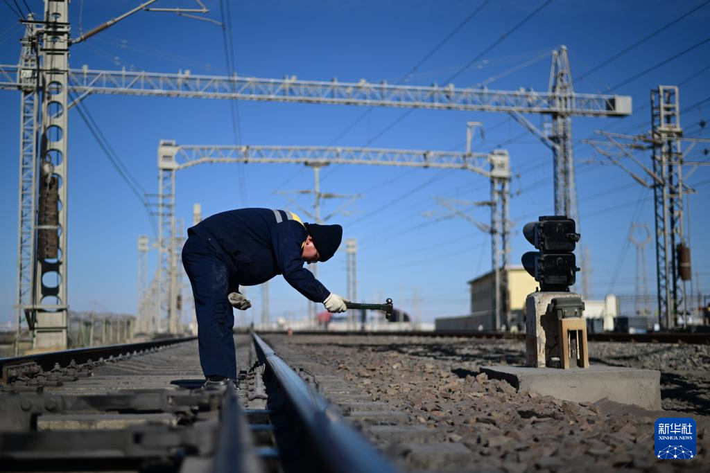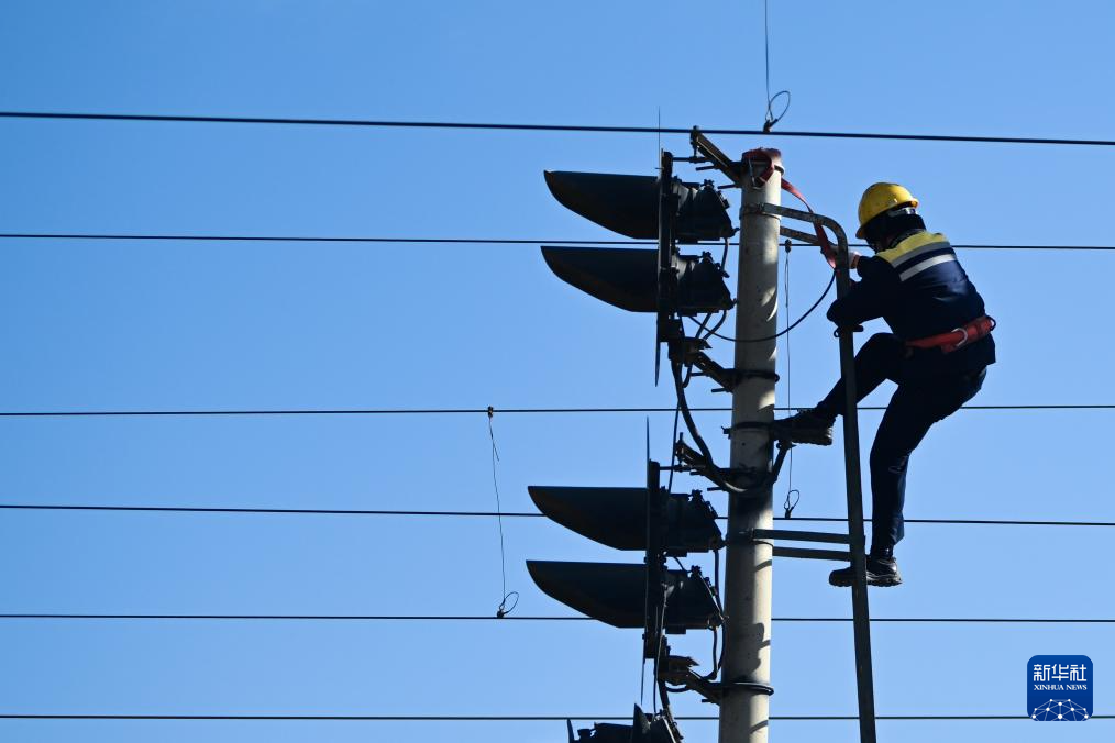 1月29日,格尔木电务段格尔木东信号车间察尔汗信号工区职工何江东在检查引接线。