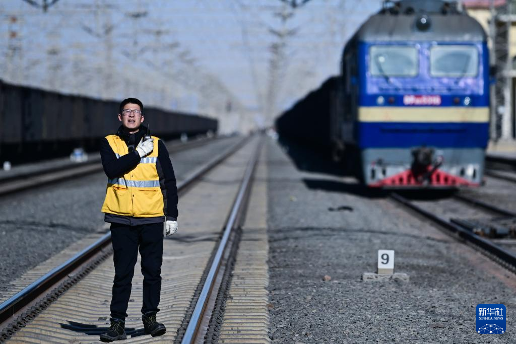 1月29日,格尔木电务段格尔木东信号车间察尔汗信号工区副工长张世铎在指挥调整信号机显示。