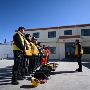 1月29日,格尔木电务段格尔木东信号车间察尔汗信号工区的职工在开展检修作业前分配任务。