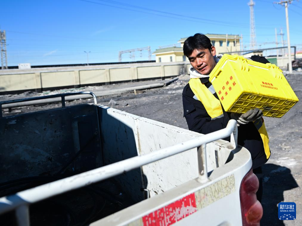 1月29日,格尔木电务段格尔木东信号车间察尔汗信号工区职工普布旦增将工具箱装车准备前往区间进行作业。