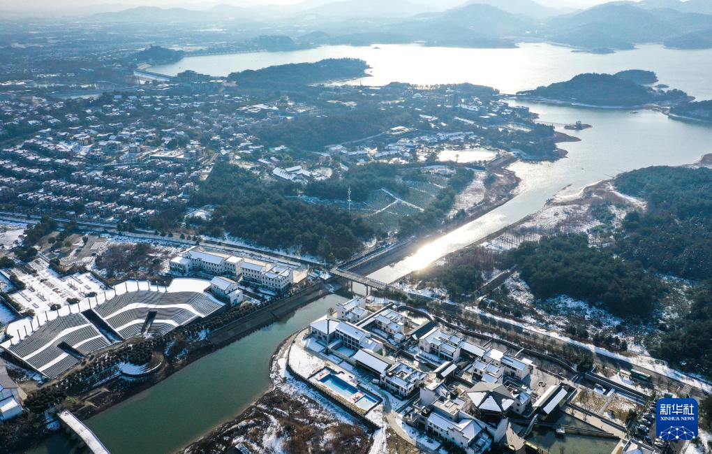 常州市溧阳市天目湖方所文化村景色(2023年12月24日摄,无人机照片)。