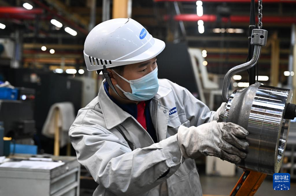 在位于常州市武进区的江苏恒立液压股份有限公司,工人在车间忙碌(2023年12月22日摄)。