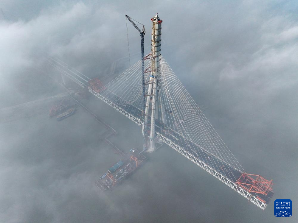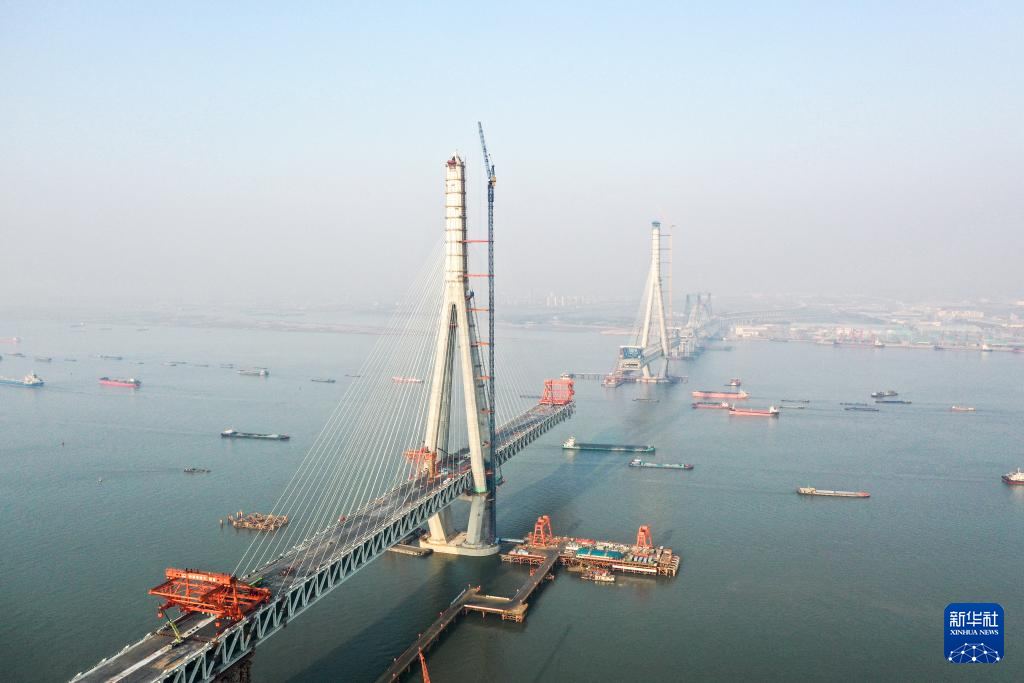1月4日拍摄的建设中的常泰长江大桥(无人机照片)。