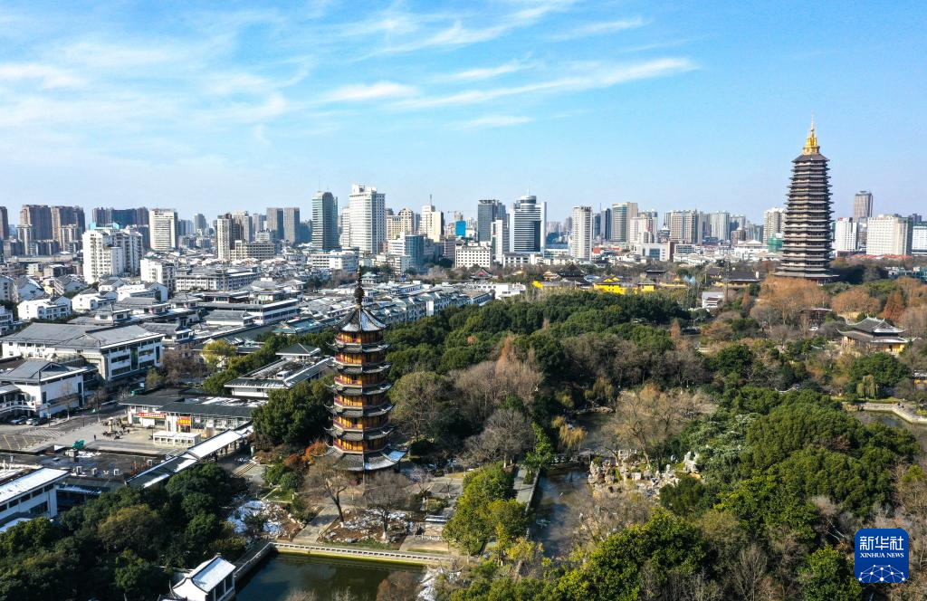 常州城区景色(1月4日摄,无人机照片)。