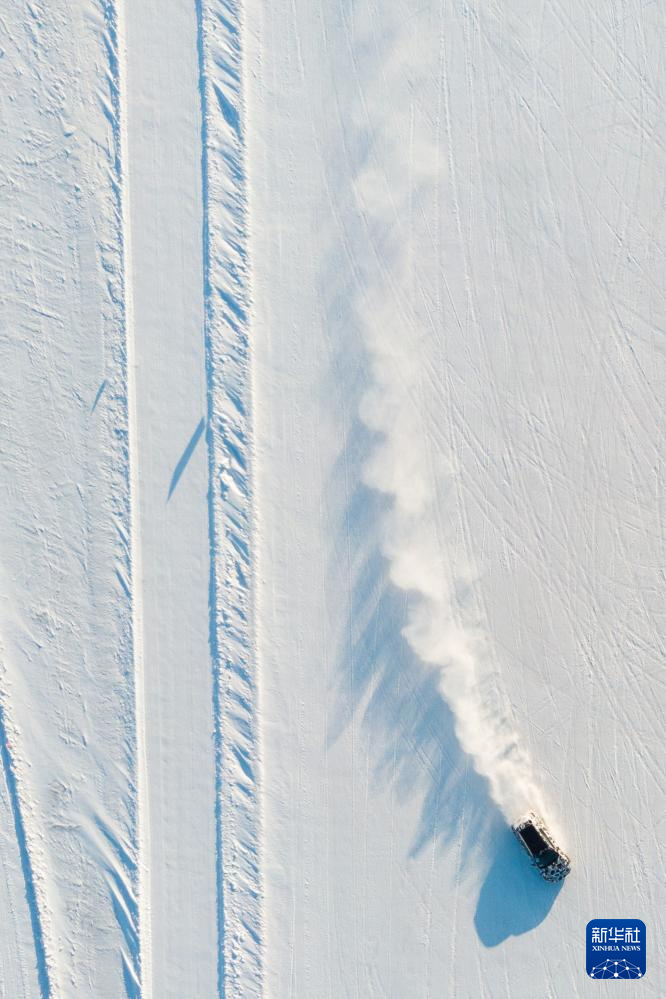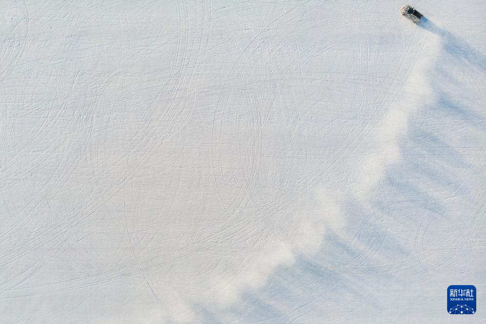 1月31日,在黑河小乌斯力测试基地,车辆进行寒区试验(无人机照片)。