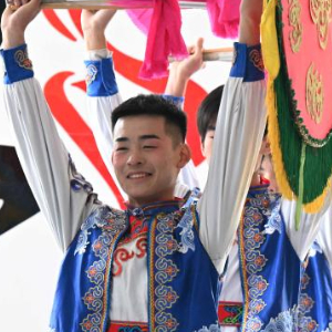 1月31日,学生在河北省石家庄市井陉县职教中心排练非遗舞蹈井陉拉花,为迎接新年演出做准备。