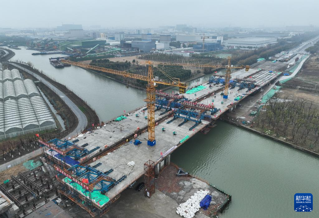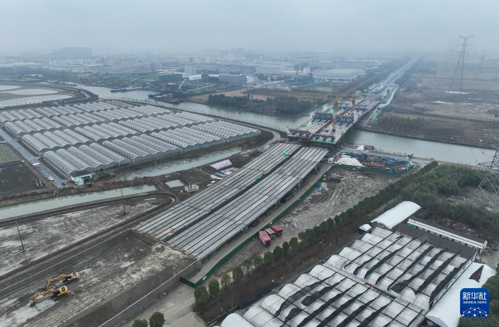 2月3日拍摄的苏州强胜路对接312国道工程施工现场(无人机照片)。