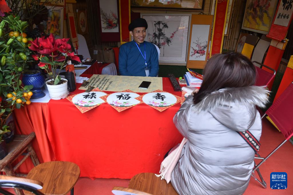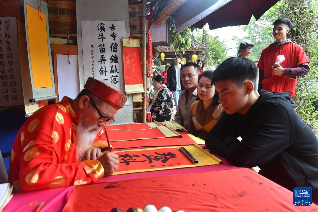 2月3日至2月19日,一年一度的新春书法节在越南首都河内的文庙-国子监举办。本次活动以“好学”为主题,邀请数十名越南书法家参与,其汉字书法作品集中展示区成为越南民众的新晋打卡地。每逢农历春节,许多越南民众求取汉字书法作品为新年讨个好彩头。