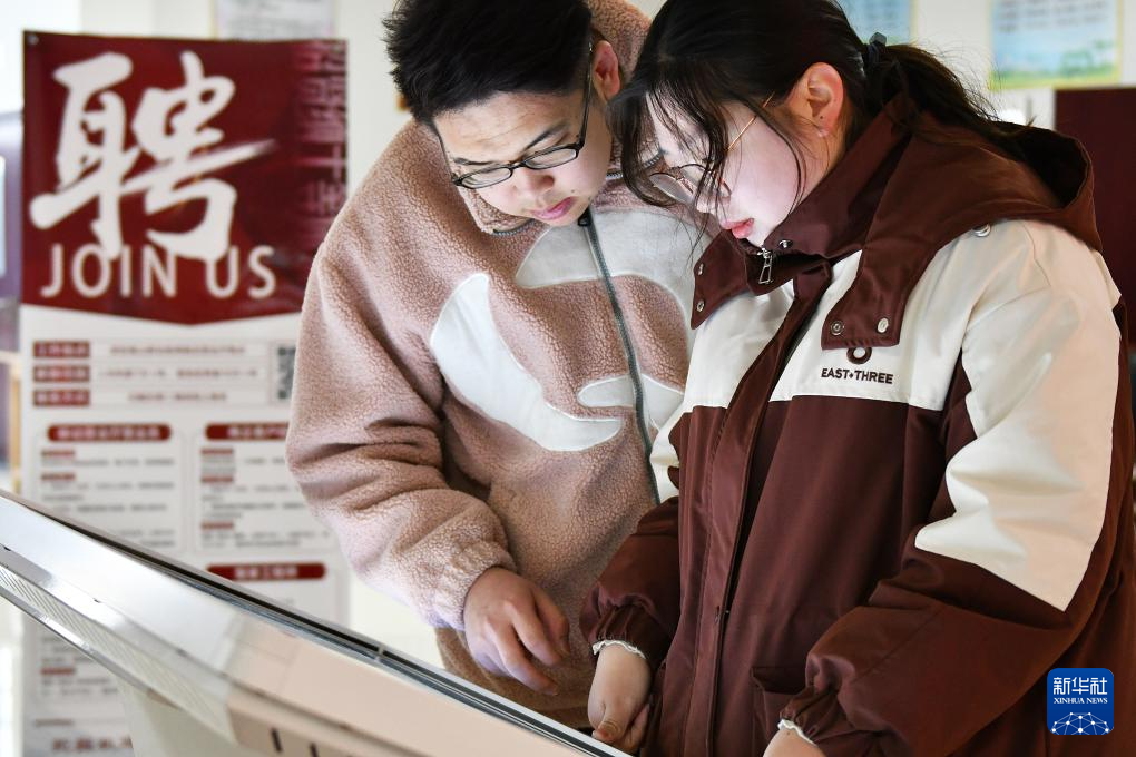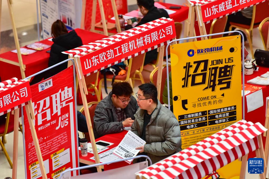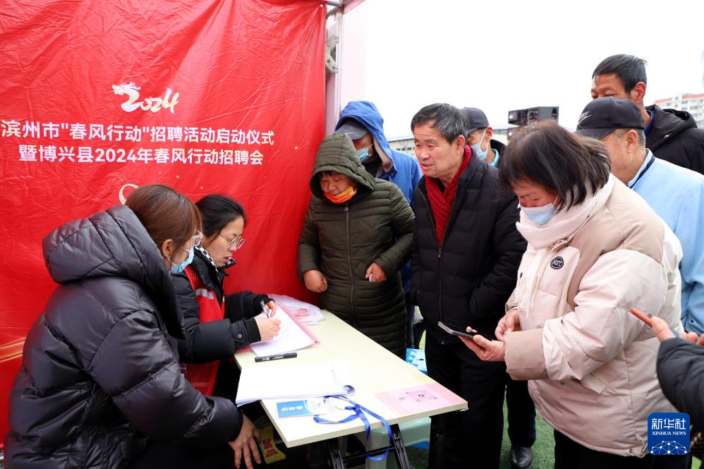 2月19日,求职者在山东省滨州市举行的“春风行动”招聘会上了解用工信息。