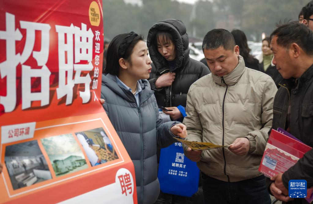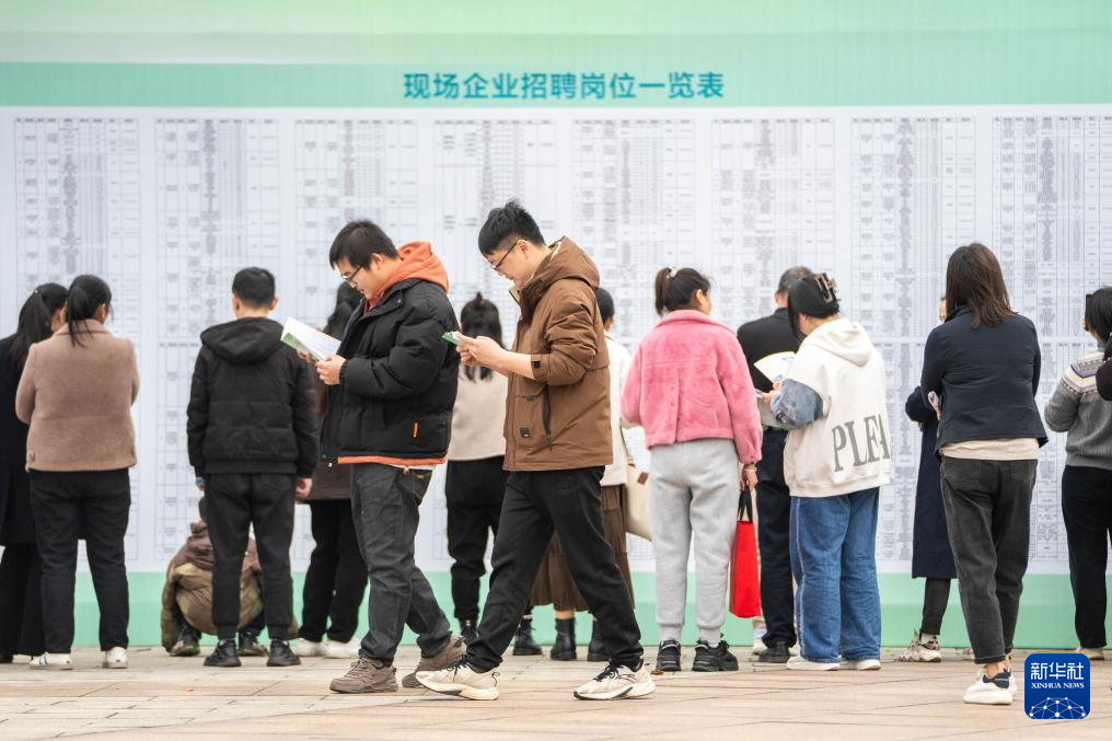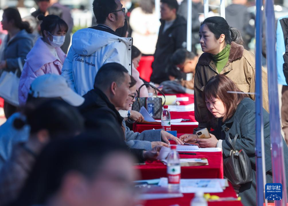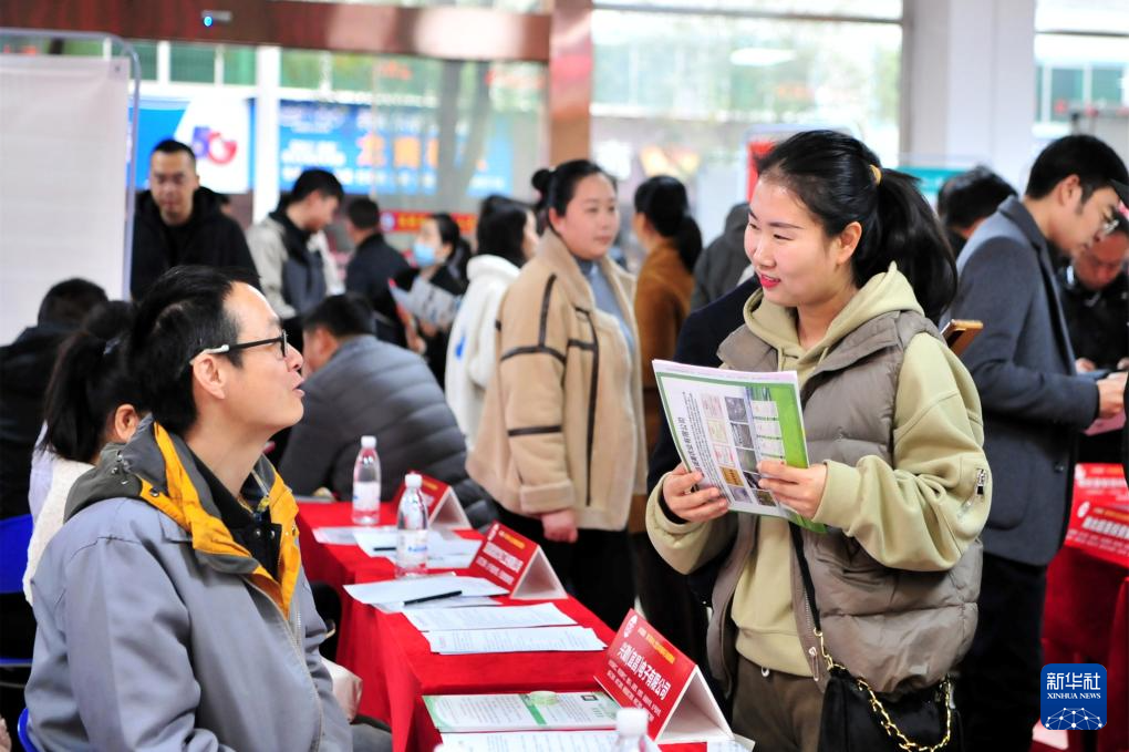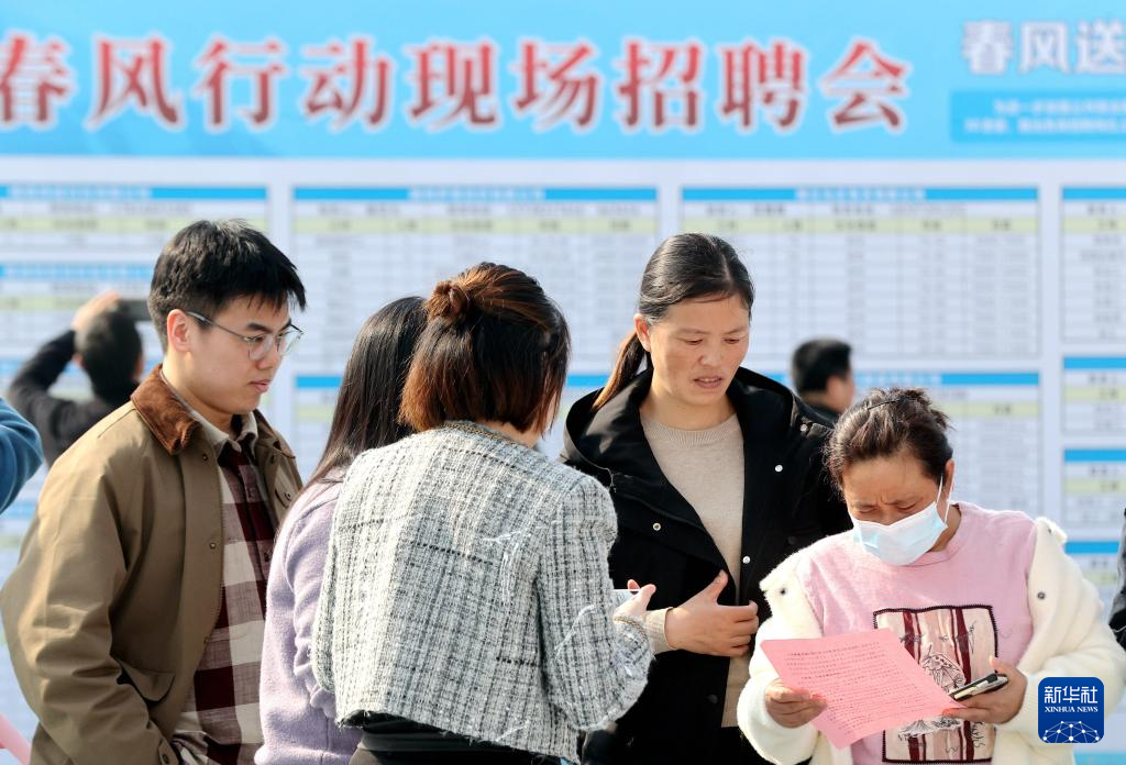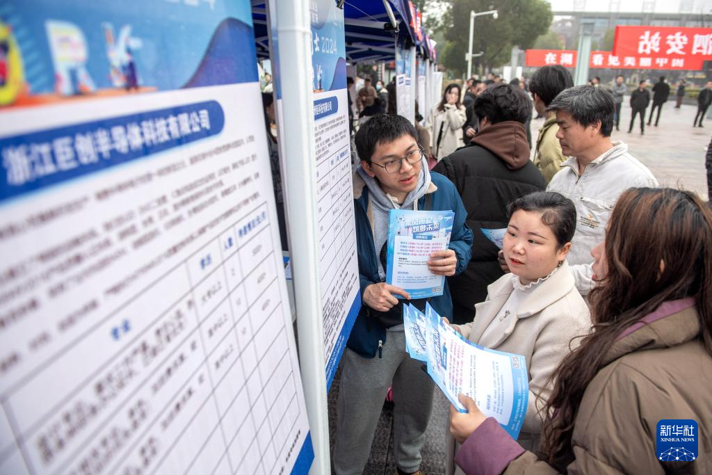 2月19日,求职者在浙江省湖州市长兴县泗安镇春季招聘会现场了解就业岗位信息。