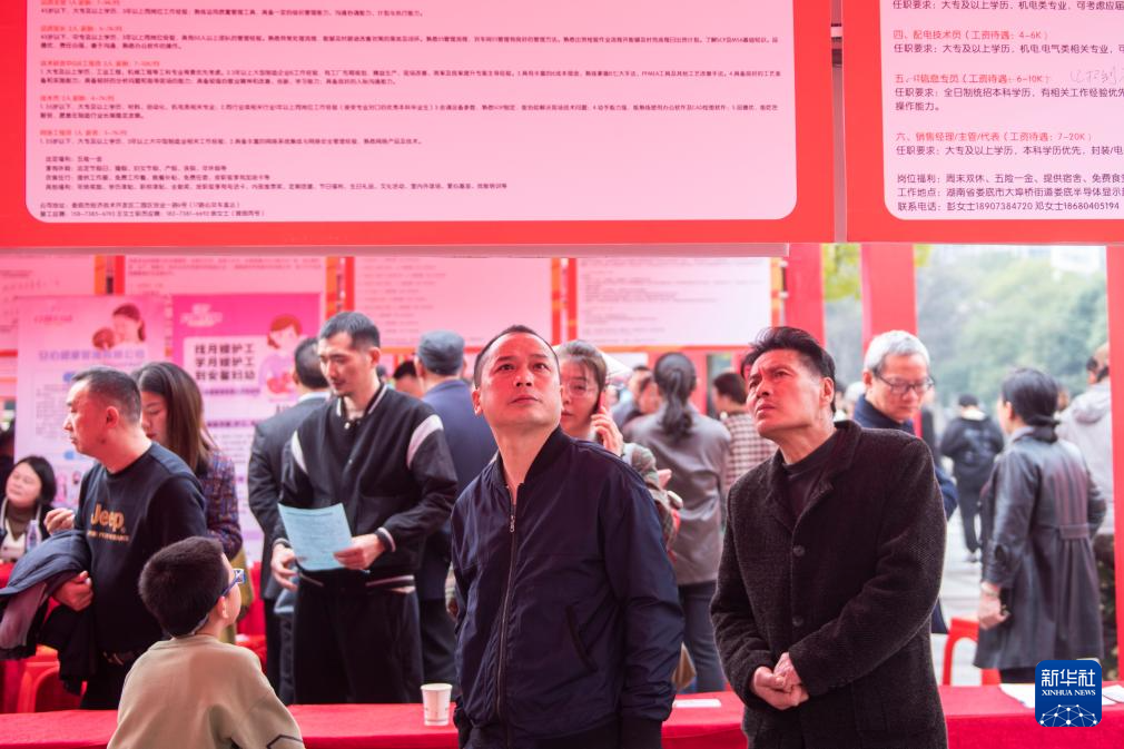 2月19日,在湖南省长沙市望城区市民广场,求职者在“春风行动”招聘活动上查看岗位信息。